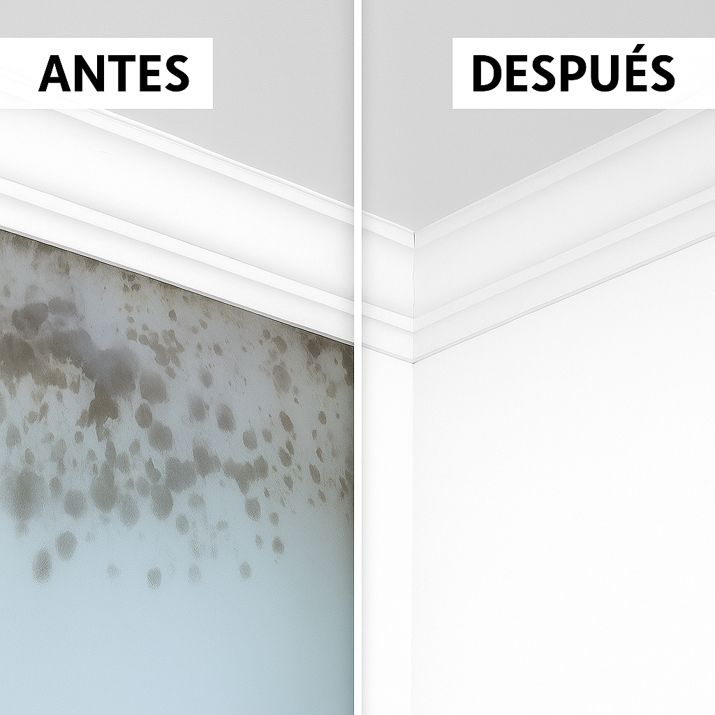 Así lucen las superficies antes de usar Humedex: manchas oscuras, pintura que se cae, mal olor y hongos. El problema no es estético, es de salud.